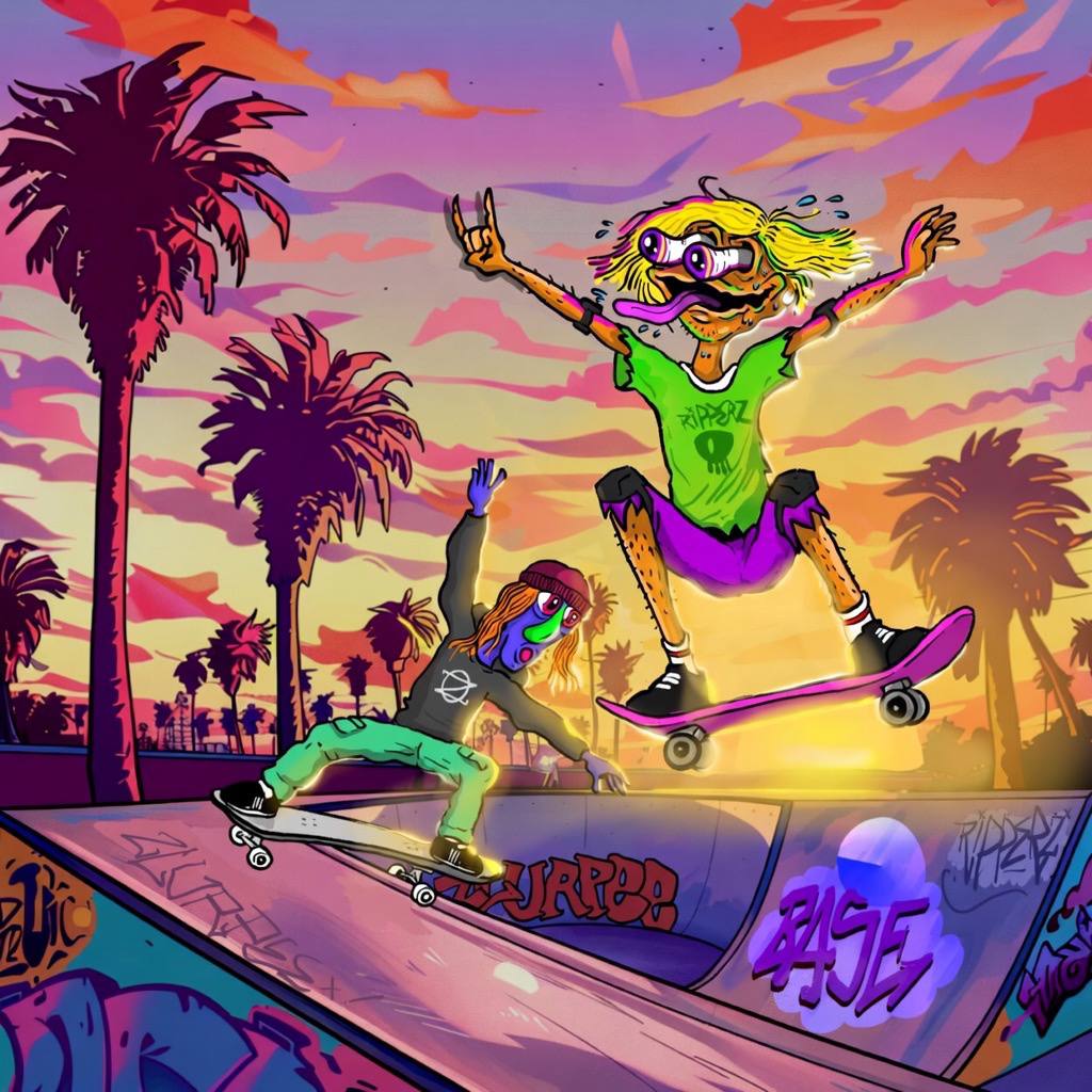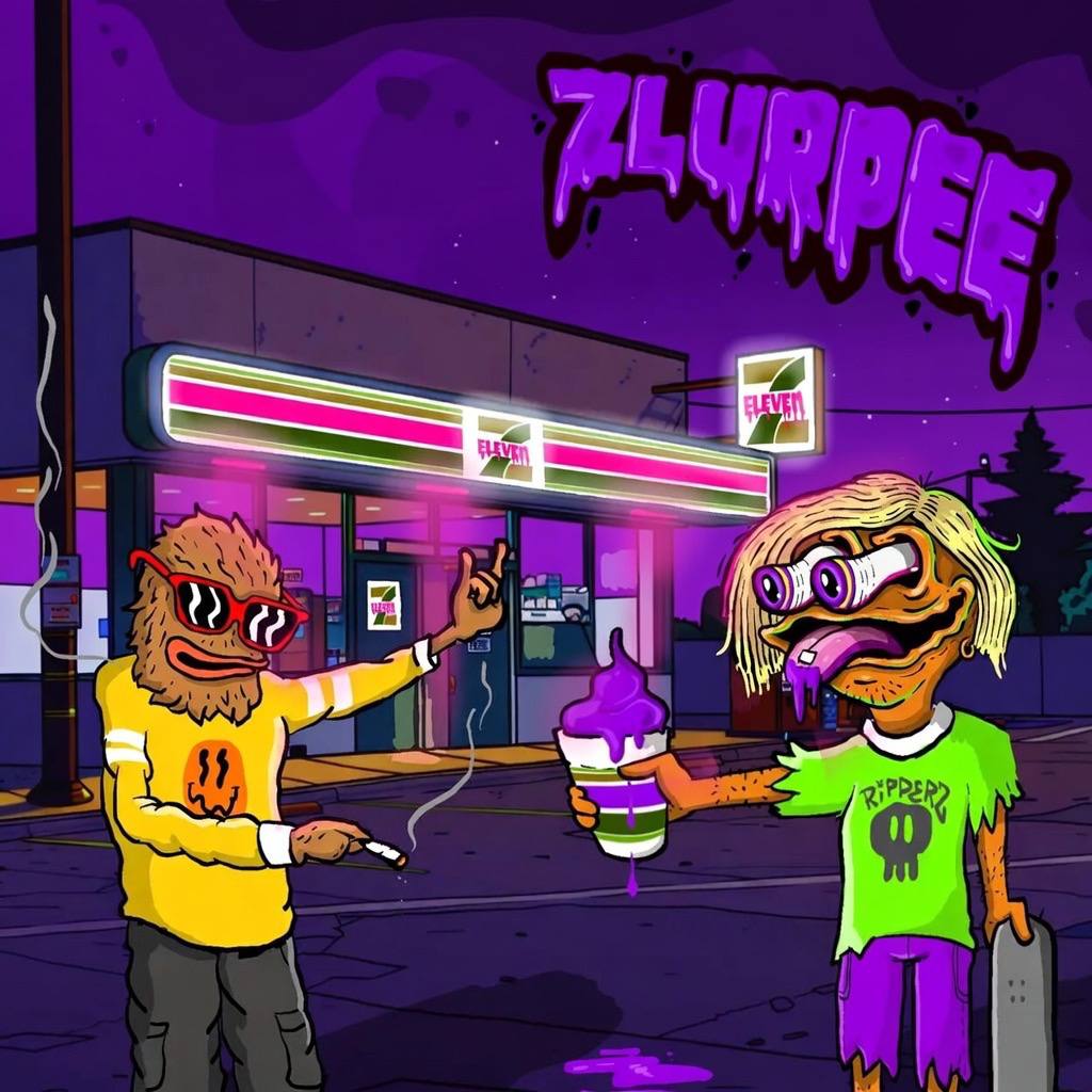Zlurpee is one of the ZOGZ from the creative mind of Matt Furie. He’s sticky, brain-freezing, and totally based. More than a mascot, Zlurpee is the leader of the Ripperz Crew — 11 gnarly skaters and surfers shredding